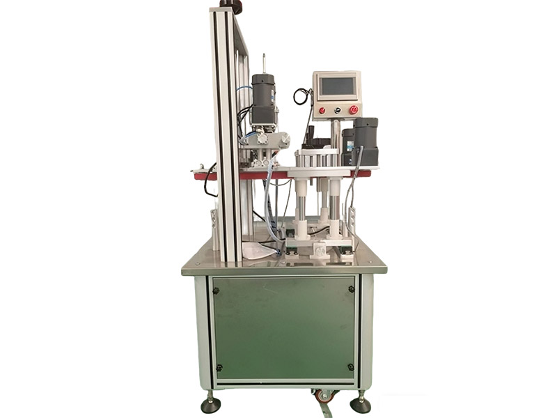 该机主要适用于不同材质及不同规格的瓶子盖子的旋(轧)盖。适用螺旋盖、防盗盖防童盖、压入盖等。备有恒扭矩旋盖头,压力可方便调整。结构紧凑、合理,能方便与其它设备联动成线,防尘罩可选购。机器优点: 直线式设计,组成流水线方便美观。主机速度采用进口变频器,能进行无级调速。采用强电磁左旋盖扭力器,解决了传统机械摩擦片在旋盖时紧时松的弊病。