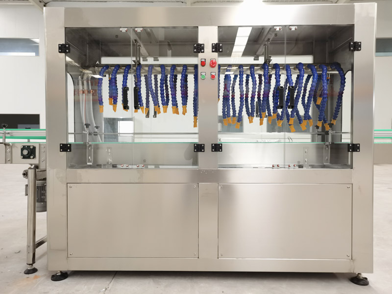 该机主要用于粘贴不干胶商标前瓶子的吹干。该机需要与流水线相配套使用,实现自动流水作业。