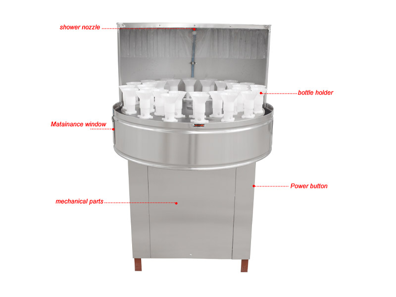 一、瓶子外壁采用喷头喷淋,喷淋压力可通过喷淋开关调整。(本机外接水源压力需高于0.1Mpa,若低于此压力,需自备加压泵。)